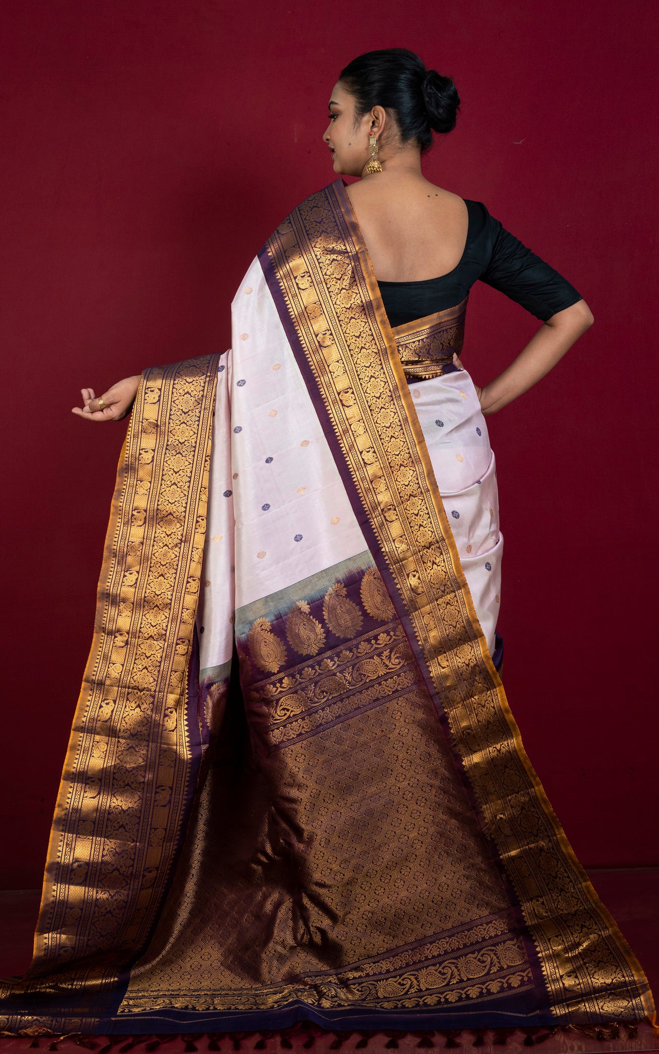 Exclusive Mahapar Maharani Gadwal Silk Saree in Oyster Pink, Wine Berry and Golden Zari Weave
